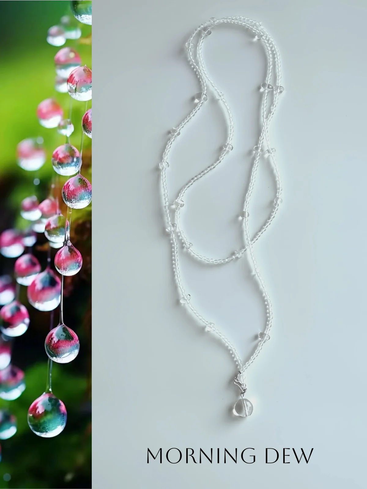 Inspired by the tranquil stillness of dawn, this necklace mirrors the gentle awakening of nature, as sunlight glimmers upon dew-kissed leaves and the world feels freshly renewed.
