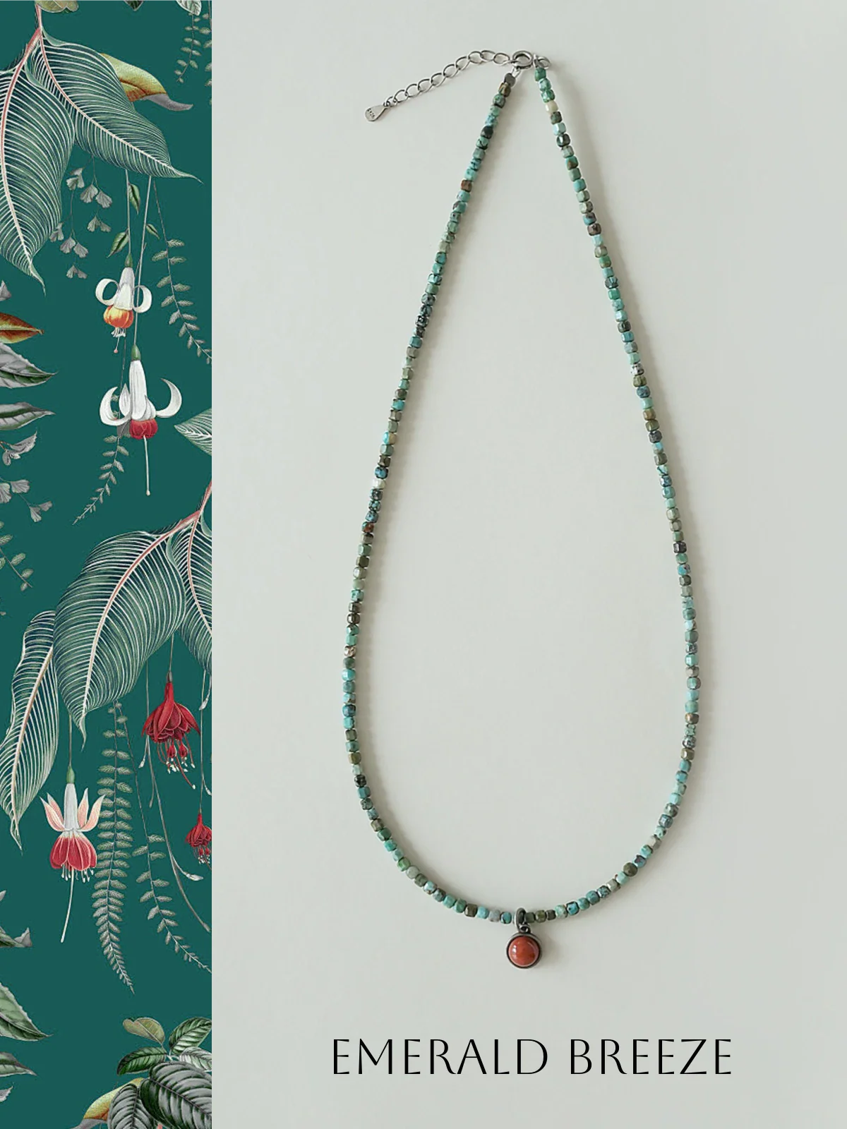 A gentle breeze weaving through emerald leaves. This necklace moves with the rhythm of life itself.