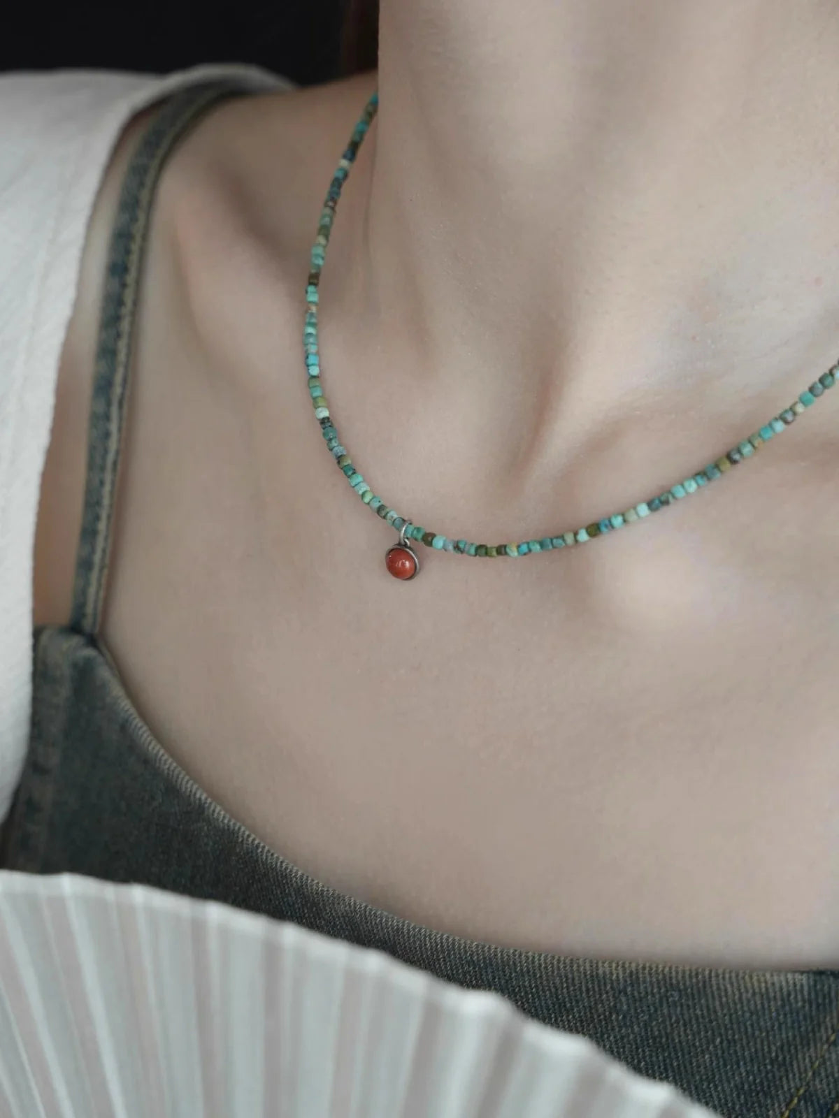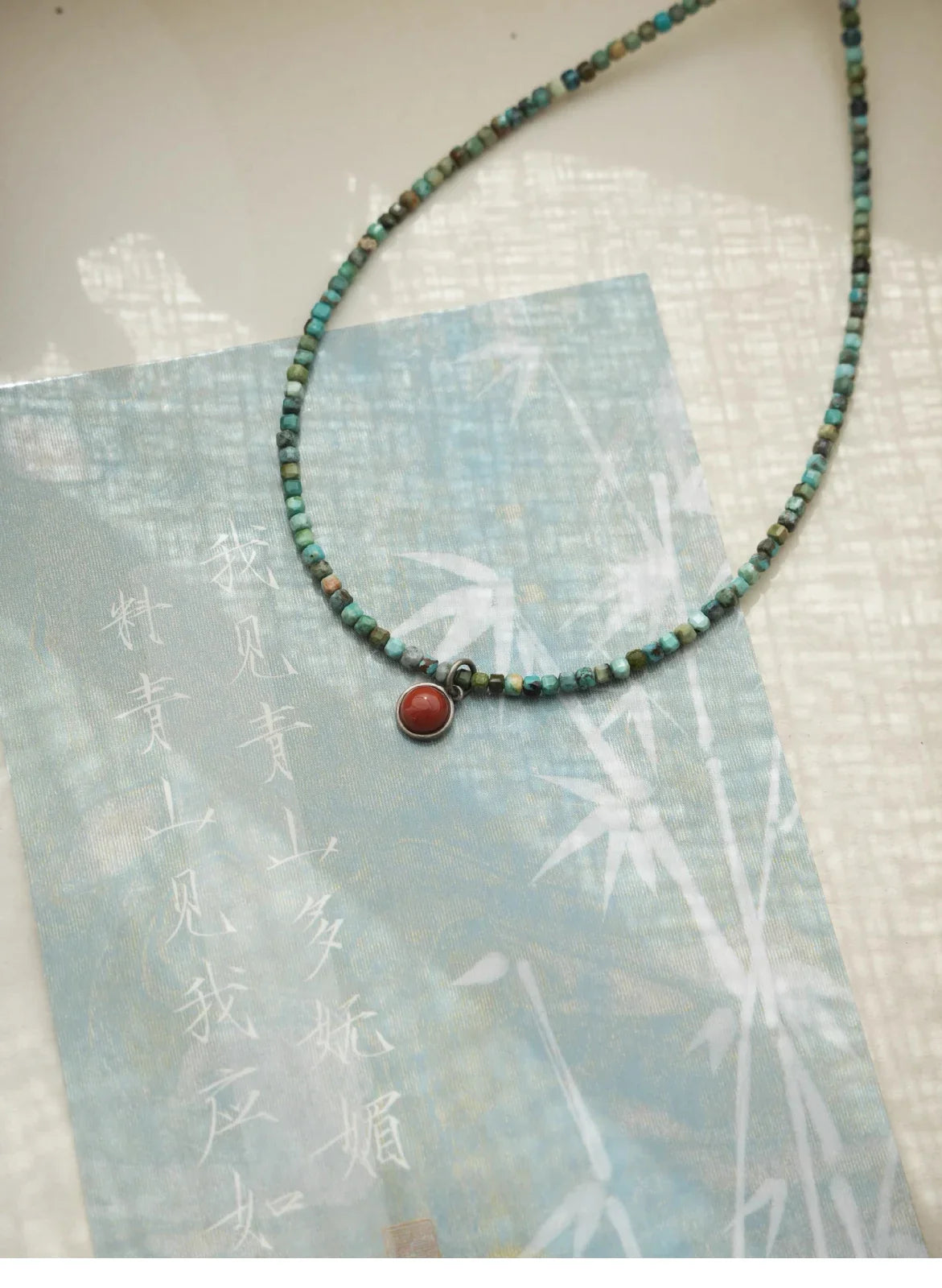 Crafted from turquoise and red agate, it channels the earth’s quiet courage and nature’s flowing vitality, bringing balance and renewal to the spirit. It carries the pulse of luck and bravery. A reminder to move forward with grace, energy, and purpose.